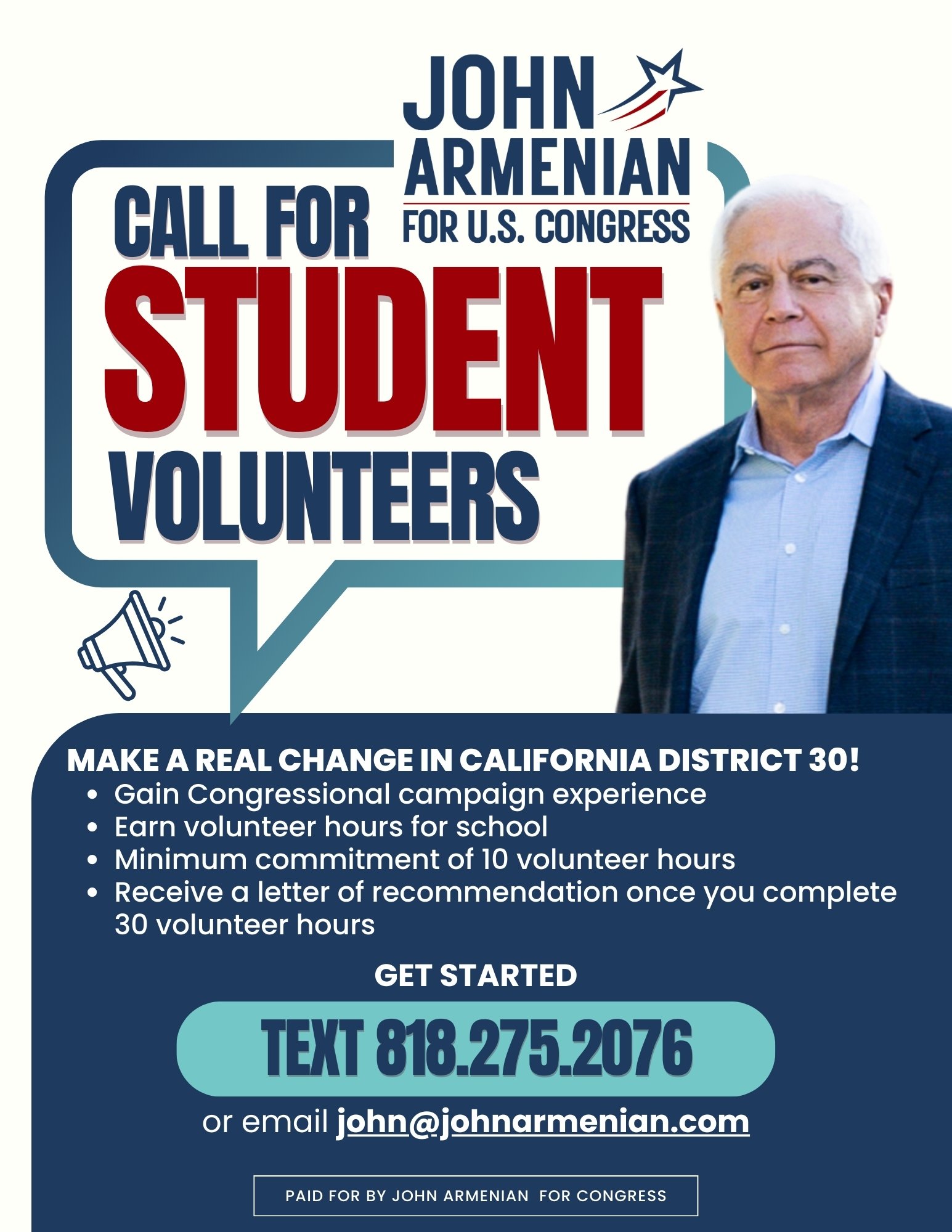 By providing your mobile phone number, you are giving your consent to receive calls and SMS/MMS messages to that number from John Armenian for Congress. Msg frequency varies. Msg & data rates may apply. Text HELP for support, reply STOP to Optout, or e-mail john@johnarmenian.com